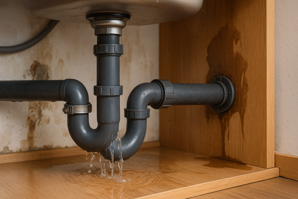 The biggest danger of a leak is that water always finds a path. It seeps, spreads, and expands quietly. What starts under your sink can end up in the ceiling of the room below.